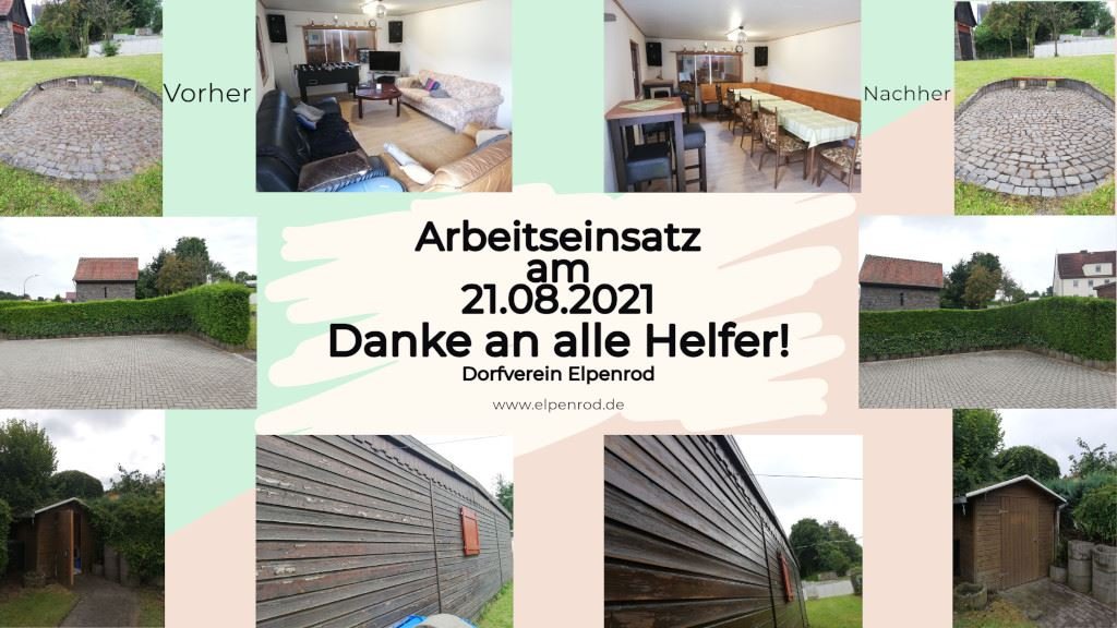 Nach einem erfolgreichen Arbeitseinsatz Ende August konnte endlich am 03.09.2021 der Dorftreff als Treffpunkt des Dorfvereins und der Dorfgemeinschaft Elpenrod eröffnet werden.Bei bestem Wetter, leckeren Würstchen vom Grill und kühlen Getränken feierten über 40 Personen die Einweihung. Dieses Beisammensein fand natürlich nur unter Einhaltung der Corona- und 3-G-Regeln statt. Der September ist der erste Monat, in welchem der Regelbetrieb des Dorftreffs aufgenommen wird. Immer im Wechsel der Wochen ist entweder mittwochs und freitags oder donnerstags und samstags geöffnet. Die genauen Zeiten können gerne dem Kalender entnommen werden.